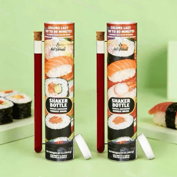Тубата за суши push pop е иновативно, интерактивно решение за опаковане, което позволява на клиентите да се насладят на суши по забавен и удобен начин, с прост механизъм за натискане, който избутва ролката суши нагоре.
