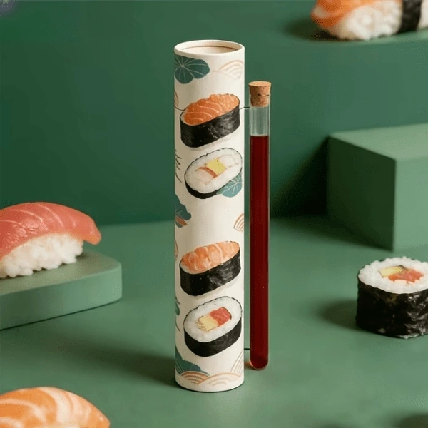 Уникальные цилиндрические тубы для суши-попсов, изготовленные на заказ, для удобной упаковки в рулоны.